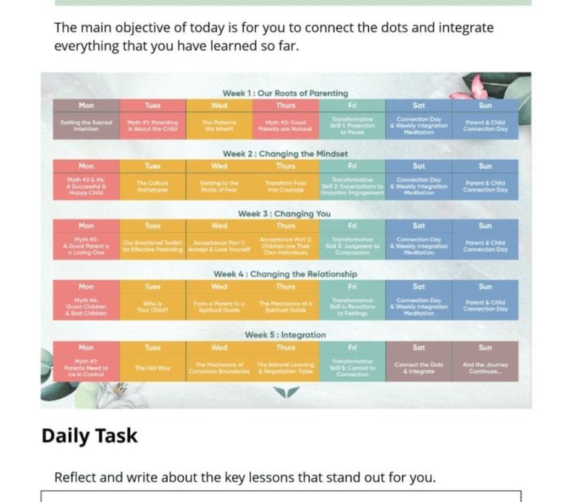 Pretty much every day disclosed that if you don’t have children, you can reflect on what Dr. Shefali talked about with the person closest to you. So, my husband was the focus of the Conscious Parenting Mastery quest for me. 😏 And it worked out really well for me.