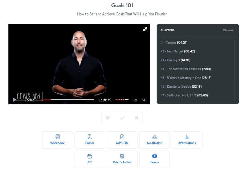 Plus, you get a workbook, a poster with the key ideas (like a cheat sheet), an MP3 file, an MP3 meditation (about 20 minutes or more), an affirmations MP3 that includes affirmations pertaining to the topic, a copy of Brian’s notes for creating the class, and a zip file with everything included (so that you can take a class when you are offline and avoid distractions.)