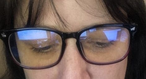 As you can see in the following pic, they have a yellowish tinge to them. They totally block the blue light from coming in. When I lift them up, the whole screen looks blueish. With them on, the screen looks very white. This is true for the computer screen and for the TV. It’s something I never thought about before this quest.