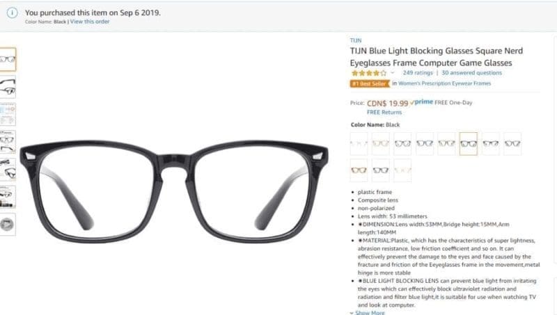 I also ordered Blue Light Blocking Glasses in the first week of the quest after Dr. Michael Breus talked about them. I got my husband black ones and myself the purple rimmed ones. We’ve been wearing these glasses every night before bed to block the blue light.